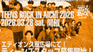 【TEENS ROCK IN AICHI 2026 ティーンズスタッフ募集要項】 TEENS ROCK IN AICHI 2026の設営を一緒に手伝っ … 続きを読む スタッフ募集要項 – 2026